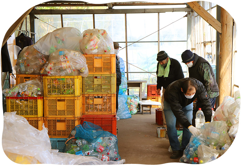 空き缶や空きビンのリサイクル、玄米もちやアンダーギーなどの製造・販売、野菜・花の栽培など、お一人おひとりにあった様々な活動を行っております。